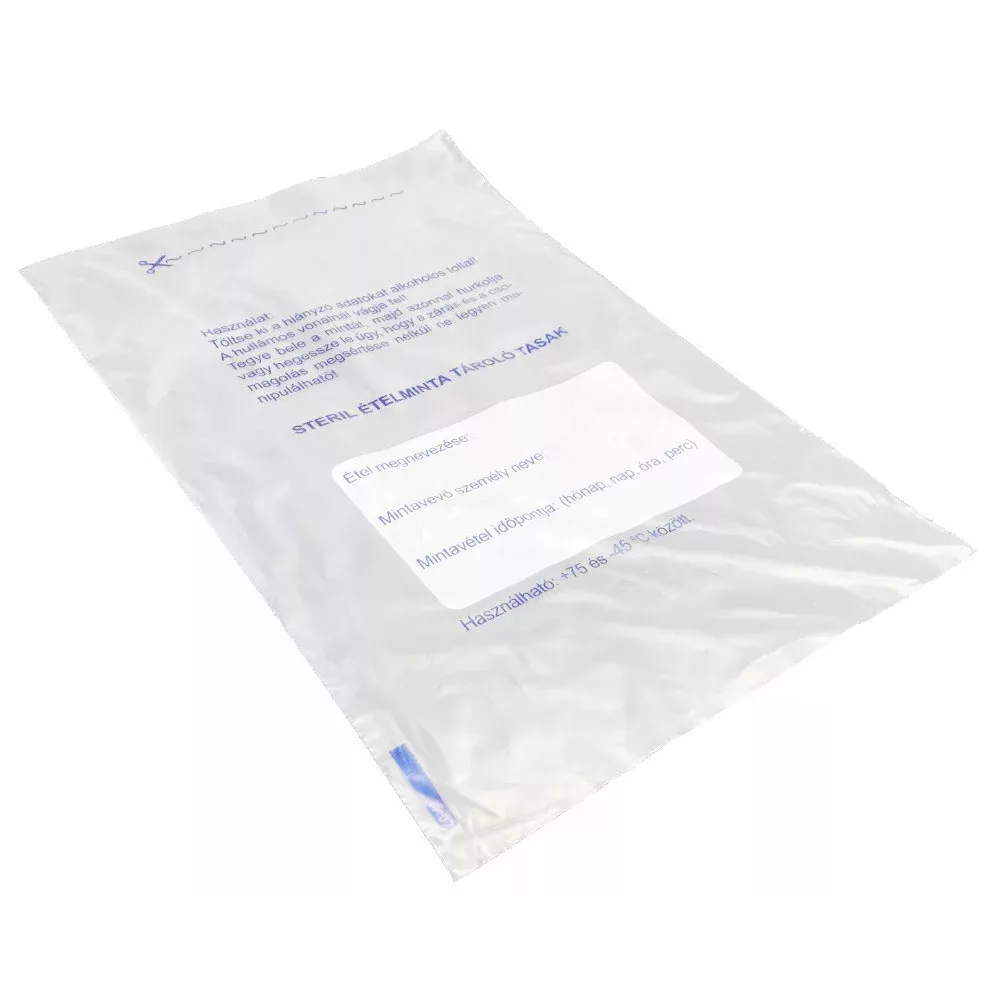 Az ételminta tároló tasak speciálisan az ételminták tárolására gyártott termék. A tasak egyaránt alkalmas szilárd és folyékony ételminta tárolására, tisztítószert, vizet és munkaidőt takarít meg, mivel nem kell mosogatni.
