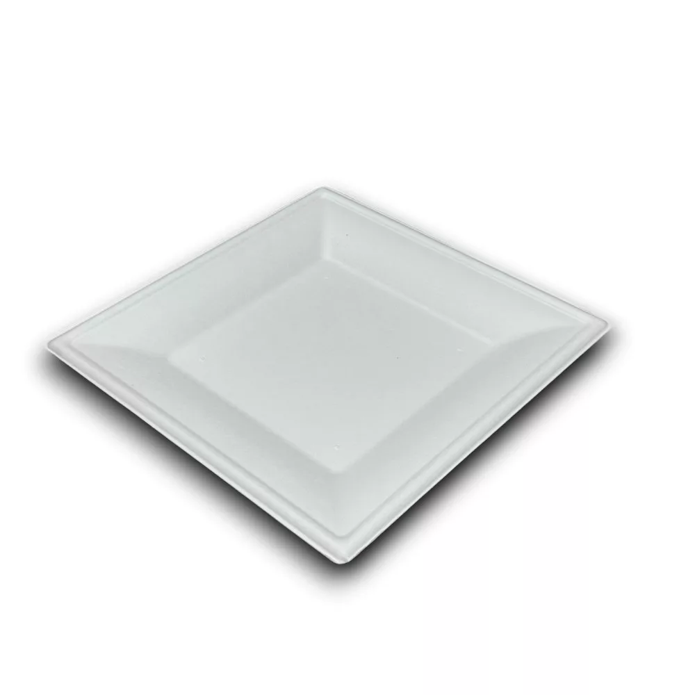 Tányér szögletes 26 x 26 cm komposztálható cukornád 50 db/csomag, natúr
