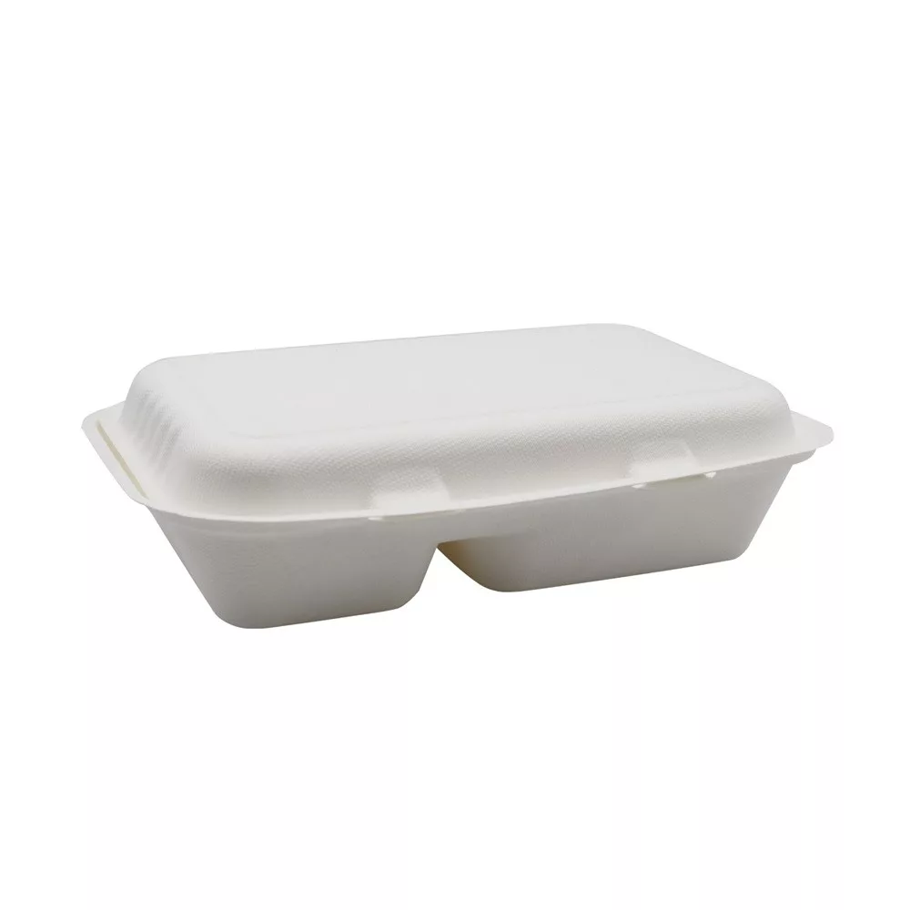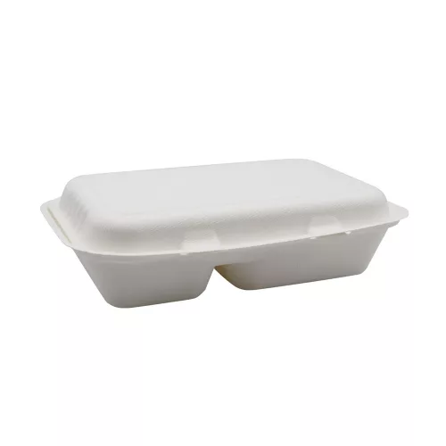 Papírdoboz ételes 2 részes HP3, 23 x 15 x 8 cm komposztálható cukornád 125 db/csomag, natúr