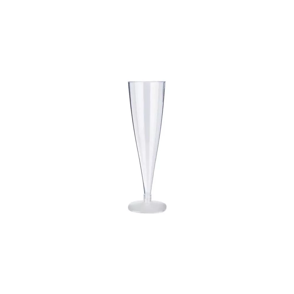 Formája keskeny és elegáns, kifejezetten pezsgőhöz készült. Anyaga könnyű műanyag, ezért egyszerűen kezelhető. Törésálló kialakítása miatt biztonságosabb, mint az üveg. Általában átlátszó, így jól látható benne az ital. Kis súlya miatt könnyen szállítható nagy mennyiségben is. Rendezvényeken, esküvőkön és céges eseményeken gyakran használják. Űrtartalma 10 cl, ami ideális pezsgőkóstoláshoz vagy kisebb adagokhoz.