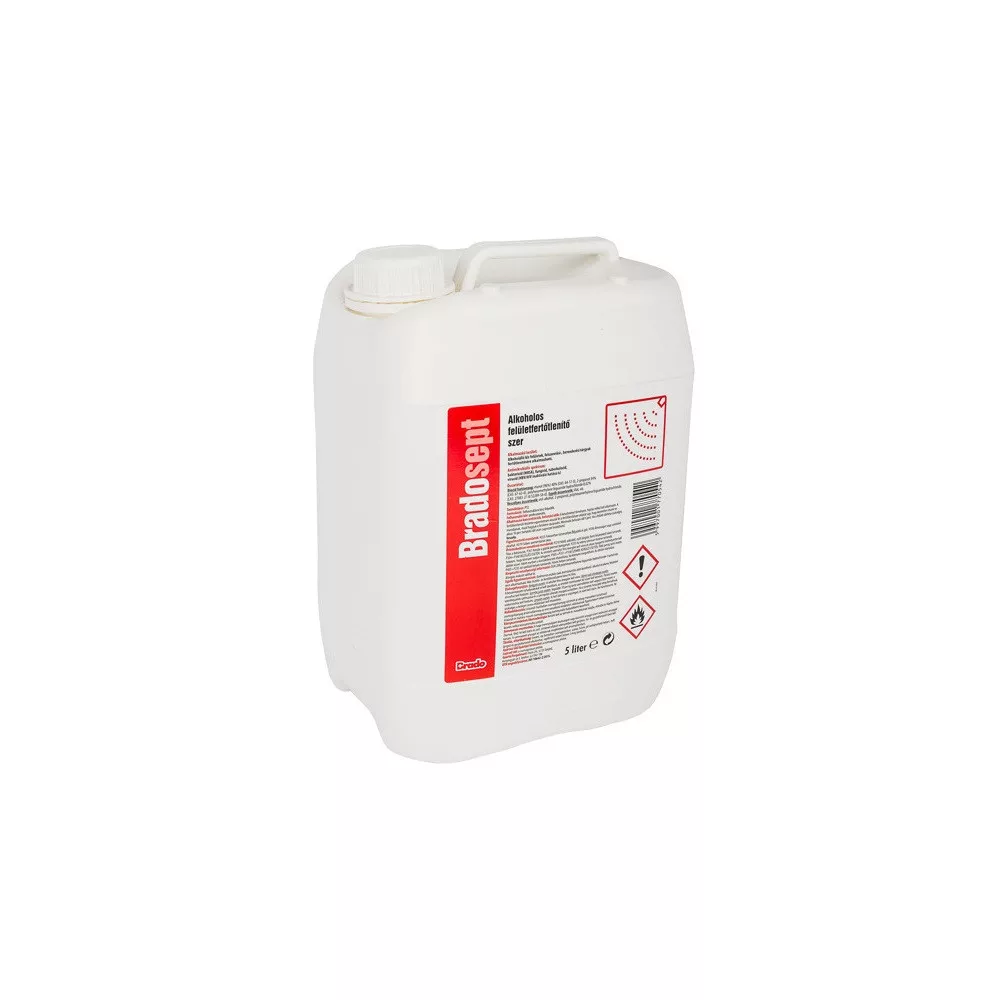Felületfertőtlenítő alkoholos 5 liter Bradosept termék alkalmazásakor ügyeljen a biztonságra! Használat előtt mindig olvassa el a címkét és a használati útmutatót!