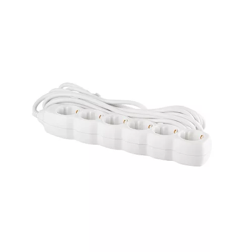 Beltéri hosszabbító, elosztó hat csatlakozó aljzattal 5m hosszúkábellel. Kábel: H05VV-F 3G1,0mm Fehér 6-os elosztó Katalóguskód: 14478