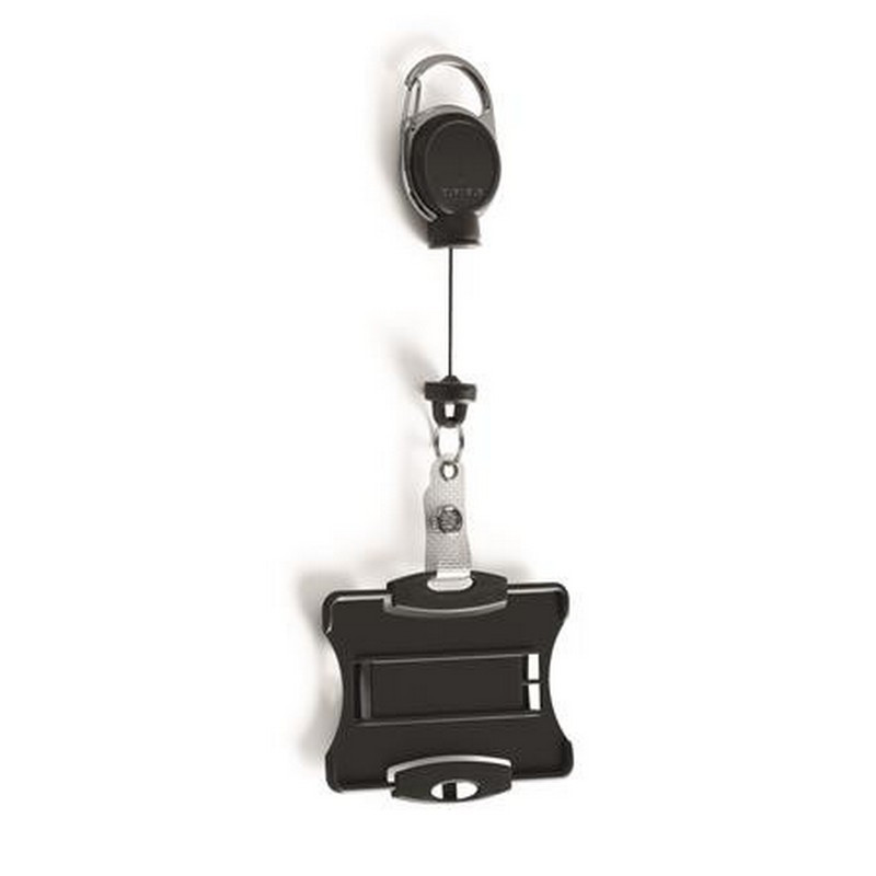 Azonosítókártya-tartó, kihúzható, karabineres, DURABLE "Extra strong", kártyatartóval, fek.... - /db