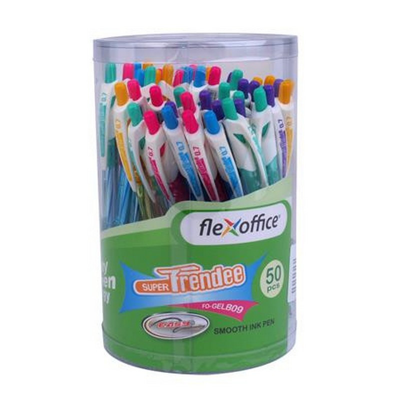 Zseléstoll, 0,35 mm, nyomógombos, vegyes színű test, FLEXOFFICE "Trendee", kék. - /csom (50 db)