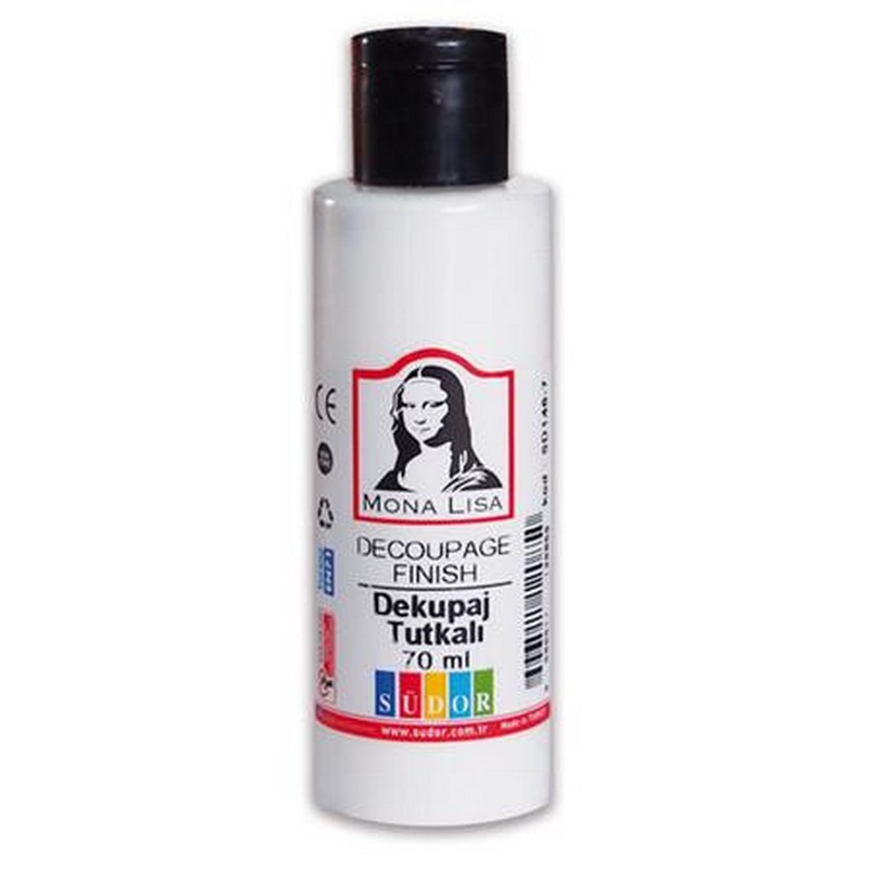 3 az 1-ben decoupage ragasztó. Ragasztó, texildecoupage, lakk. Alkalmas papír, fa, polisztirol, textil, pamut, műszál, stb. felületre. Vízbázisú, vízzel hígítható. Nagyobb hígítás esetén matt felületet ad, míg sűrűbb, vagy többszöri felület kezelés után lakkszerű hatás érhető el. Textil felületen 130 fokon vasalással fixáljuk.