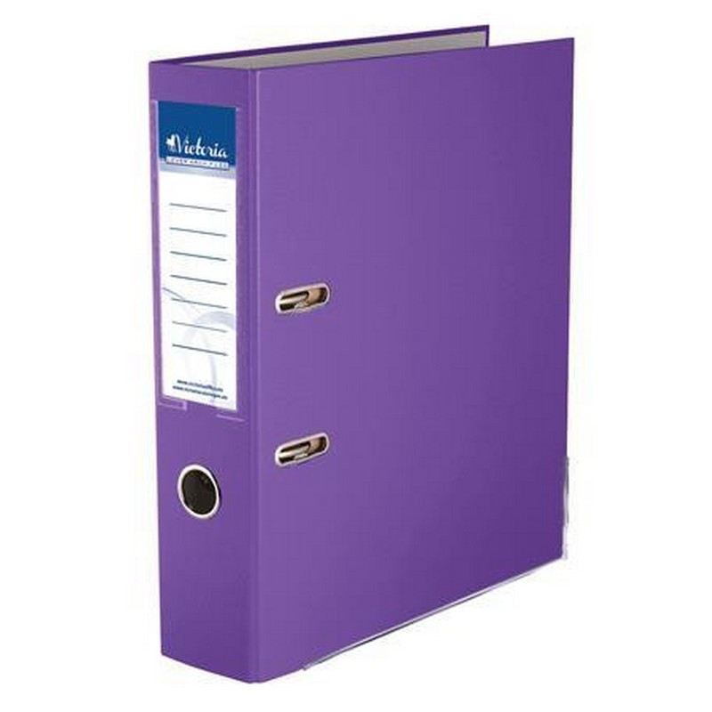 Iratrendező, 75 mm, A4, PP/karton, élvédő sínnel, VICTORIA OFFICE, "Basic", lila. - /db