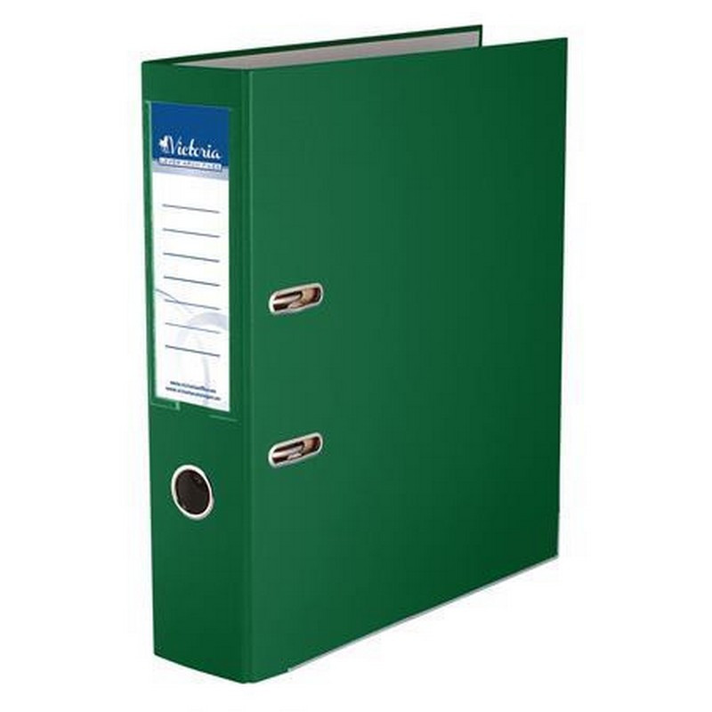 Iratrendező, 75 mm, A4, PP/karton, élvédő sínnel, VICTORIA OFFICE, "Basic", zöld. - /db