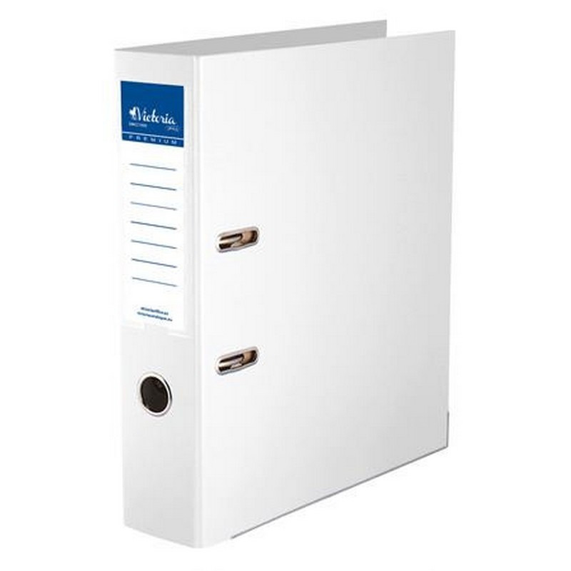 Iratrendező, 75 mm, A4, PP/PP, élvédő sínnel, VICTORIA OFFICE, "Premium", fehér. - /db