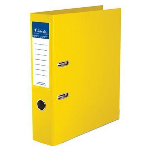 Iratrendező, 75 mm, A4, PP/PP, élvédő sínnel, VICTORIA OFFICE, "Premium", sárga. - /db