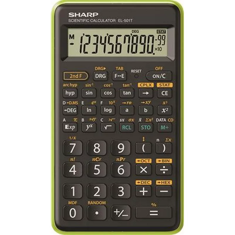 Számológép, tudományos, 146 funkció, SHARP "EL-501TBGR", fekete-zöld