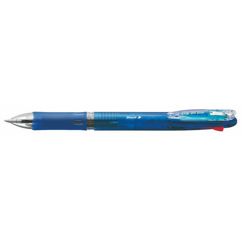 Golyóstoll, 0,24 mm, nyomógombos, négyszínű, ZEBRA "Clip-on Slim 4C", kék. - /db