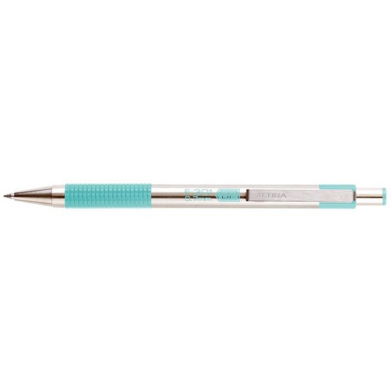 Golyóstoll, 0,24 mm, nyomógombos, rozsdamentes acél, pasztellzöld tolltest, ZEBRA "F-301",.... - /db