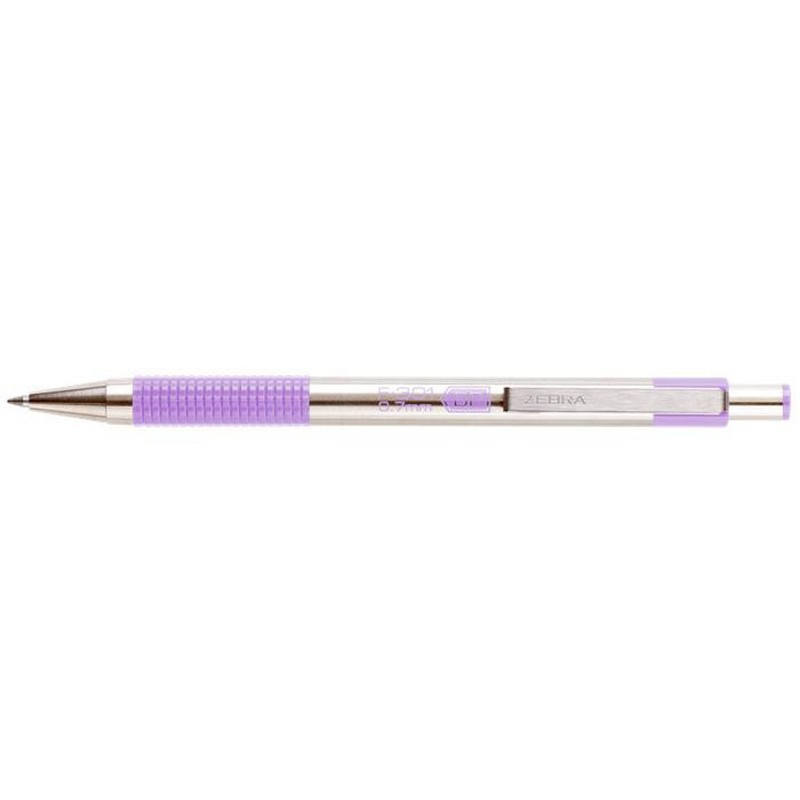 Golyóstoll, 0,24 mm, nyomógombos, rozsdamentes acél, pasztell-lila tolltest, ZEBRA "F-301".... - /db