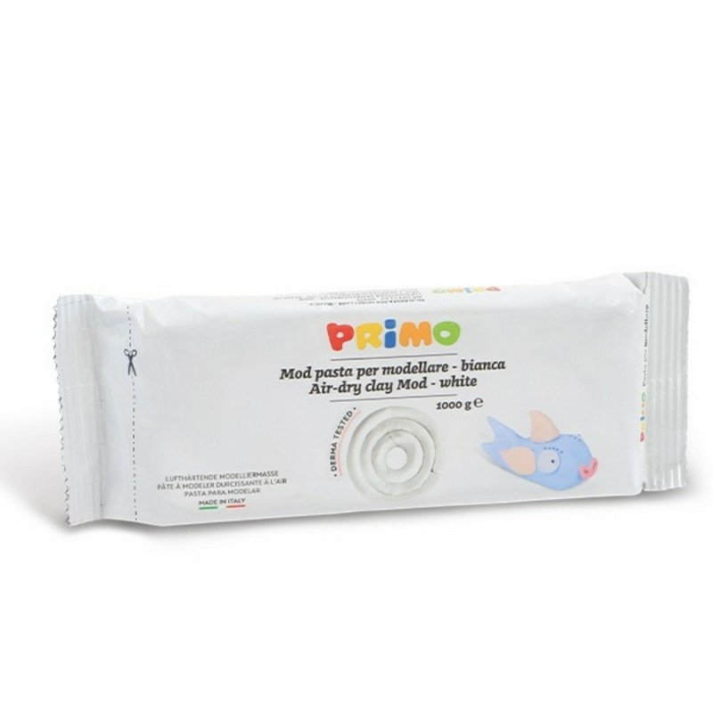A PRIMO 2856MOD1000B fehér gyurma levegőn keményedő 1000g egy könnyen formázható és gyorsan keményedő gyurma, amely ideális kreatív projektekhez és művészeti alkotásokhoz.