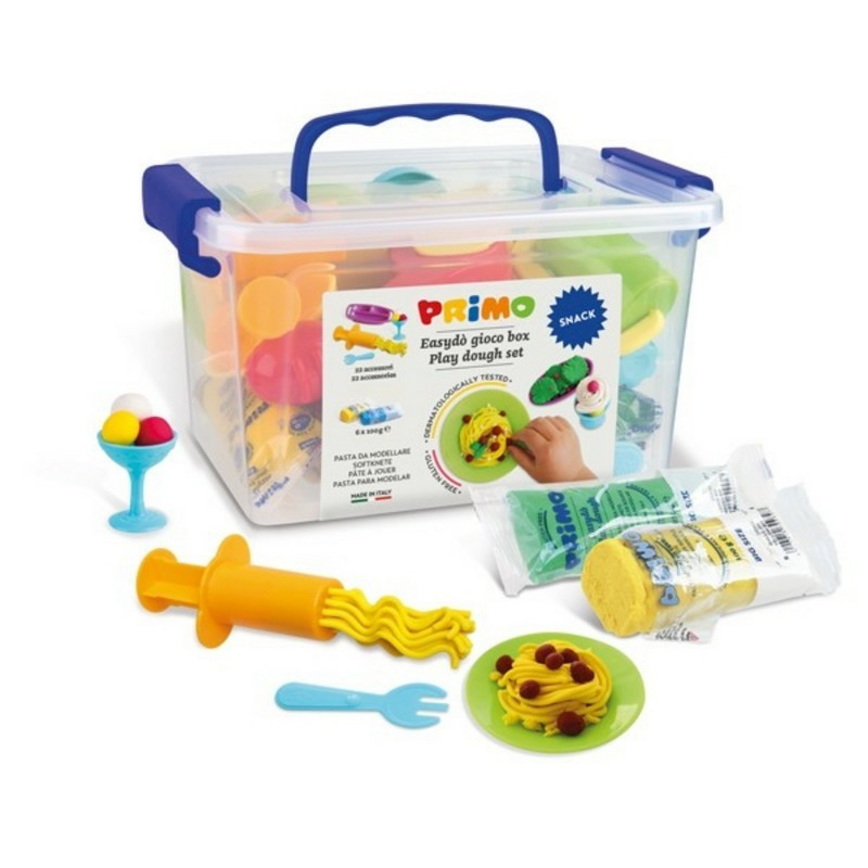 A PRIMO EasyDo 288BARGF (Snack bar) 6x100g gyurmatészta és nyomóformák egy praktikus és kreatív játék, amely lehetővé teszi a gyerekek számára, hogy könnyedén készítsenek finom és szórakoztató formájú gyurmasüteményeket.