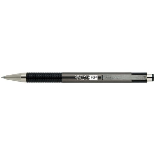 Golyóstoll 0,7mm, metál antracit test, Zebra F-301A, írásszín kék