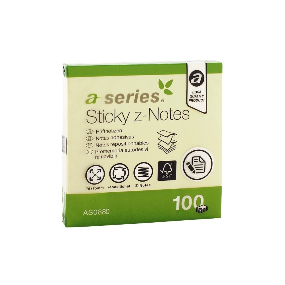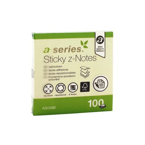 Jegyzettömb öntapadó, 75x75mm, 100lap, 'Z' A-Series, sárga