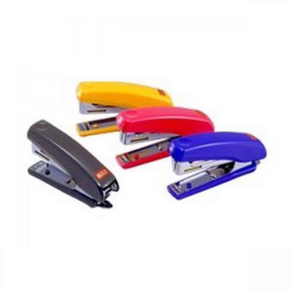 Krómacél testű, színes műanyag borítású tűzőgép, beépített kapocskiszedővel. Ergonomikus kialakítással és könnyen kezelhető kapocstöltési mechanikával rendelkezik.Szétnyitott állapotban alkalmas a hajlítás nélküli tűzés („szegelés”) funkcióra (plakát, fénykép, dekorációk rögzítésére fa, vagy falfelületre).Tűzési mélység: 55 mm. A kapocstár oldalán kialakított kémlelőnyíláson ellenőrizhető az aktuális kapocs mennyisége. Áttűzhető lapszám: 20 lap (64g.) 16 lap (80 g.) Kapocs: No.10-1M Katalóguskód: 1482