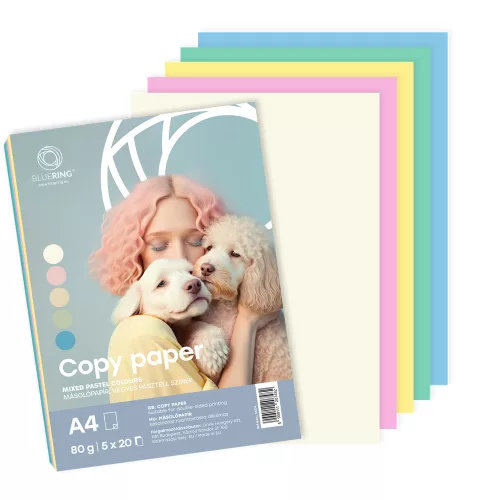 Másolópapír, színes, vegyes színek A4, 80 g Bluering® 5x20 ív/csomag, pasztell mix