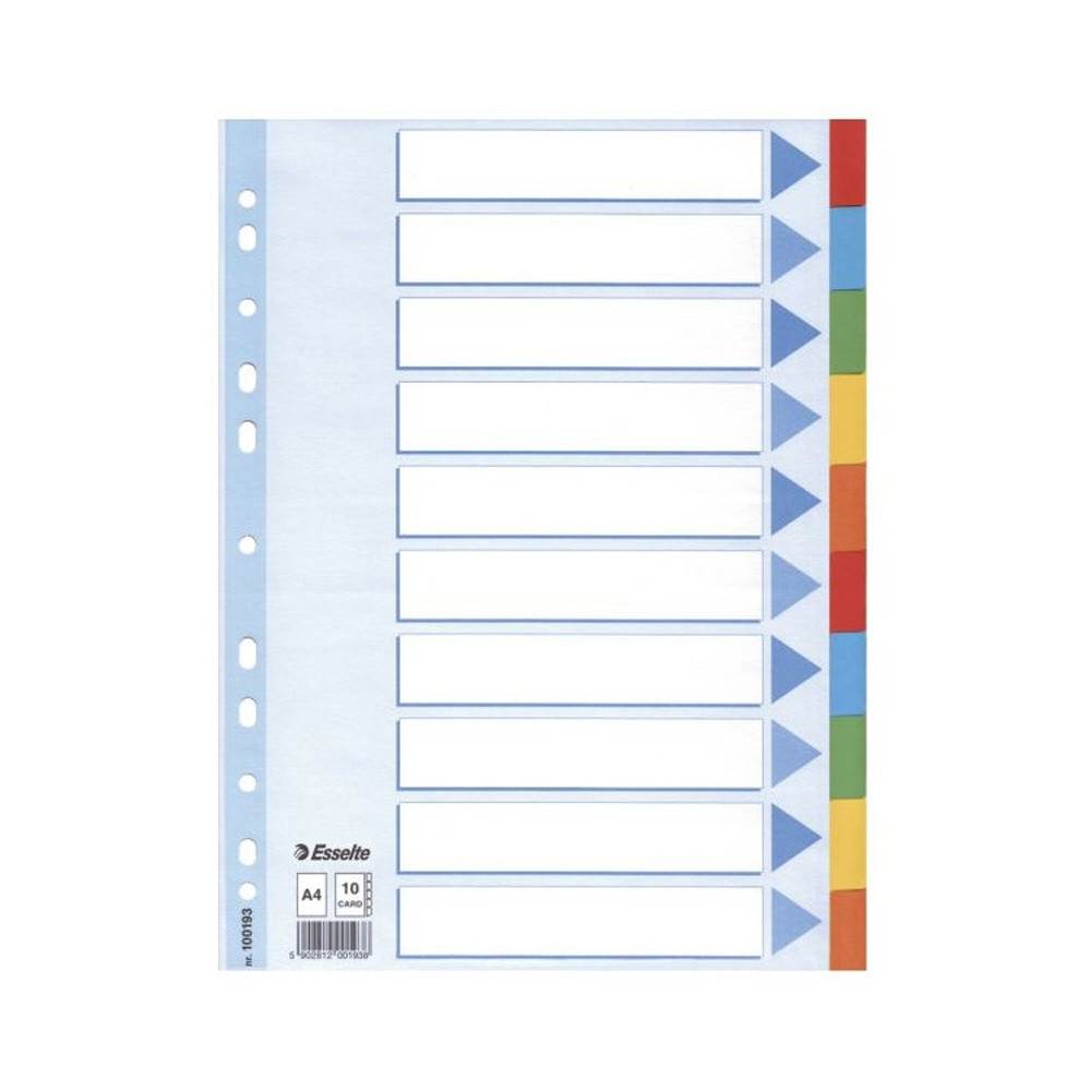Regiszter A4, 10 részes karton írható előlappal Esselte Standard színes