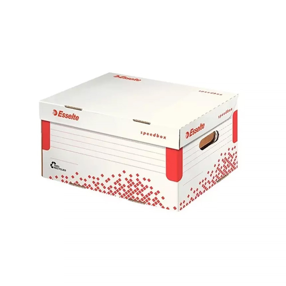 A Speedbox dobozokkal időt és energiát takaríthat meg - mindössze egy mozdulat és máris készen állnak az archiválásra - összeállítása könnyű és gyors, nincsen szükség összeállítási útmutatóra - gyors összeállítás, időhatékony archiválás - a megerősített oldalfalaknak és talpnak köszönhetően rendkívül erős - több konténer is egymásra pakolható - felnyitható tetővel - A4 vagy foolscap méretű dokumentumok, mappák, újságok, katalógusok és egyéb irodai kellékek (kábelek, töltők) tárolásához - ideális terjedelmesebb dokumentumok és egyéb irodai kellékek tárolásához, szállításához megbeszélésekre, prezentációkra - 100%-ban újrahasznosított és 100%-ban újrahasznosítható karton alapanyag, FSC minősített - méret: 355 mm x 193 mm x 252 mm Katalóguskód: 35911