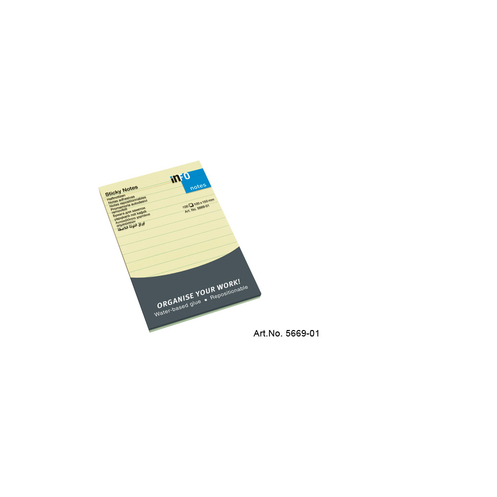 Jegyzettömb öntapadó, 100x150mm, 100lap, Info Notes, vonalas sárga