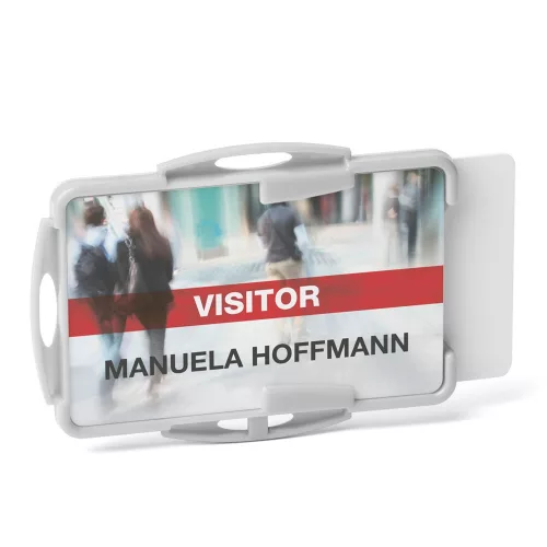 Nyitott kártyatartó egy vagy két kártya tárolására - Álló vagy fekvő formátumban is használható - Lánccal, textilszalaggal vagy kihúzható tartóval kombinálható Katalóguskód: 36883
