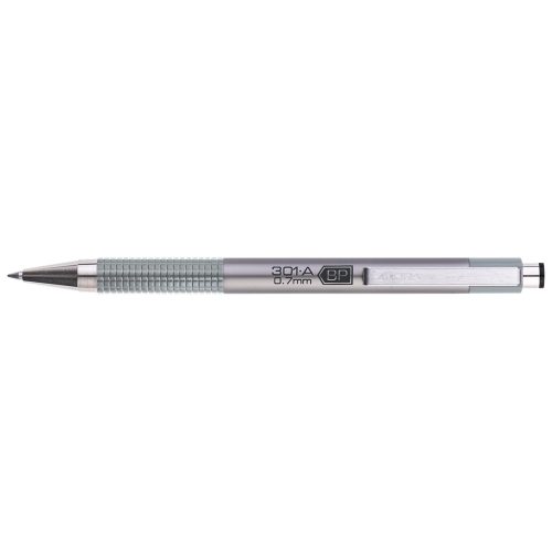 Golyóstoll 0,7mm, metál ezüst test, Zebra F-301A, írásszín kék