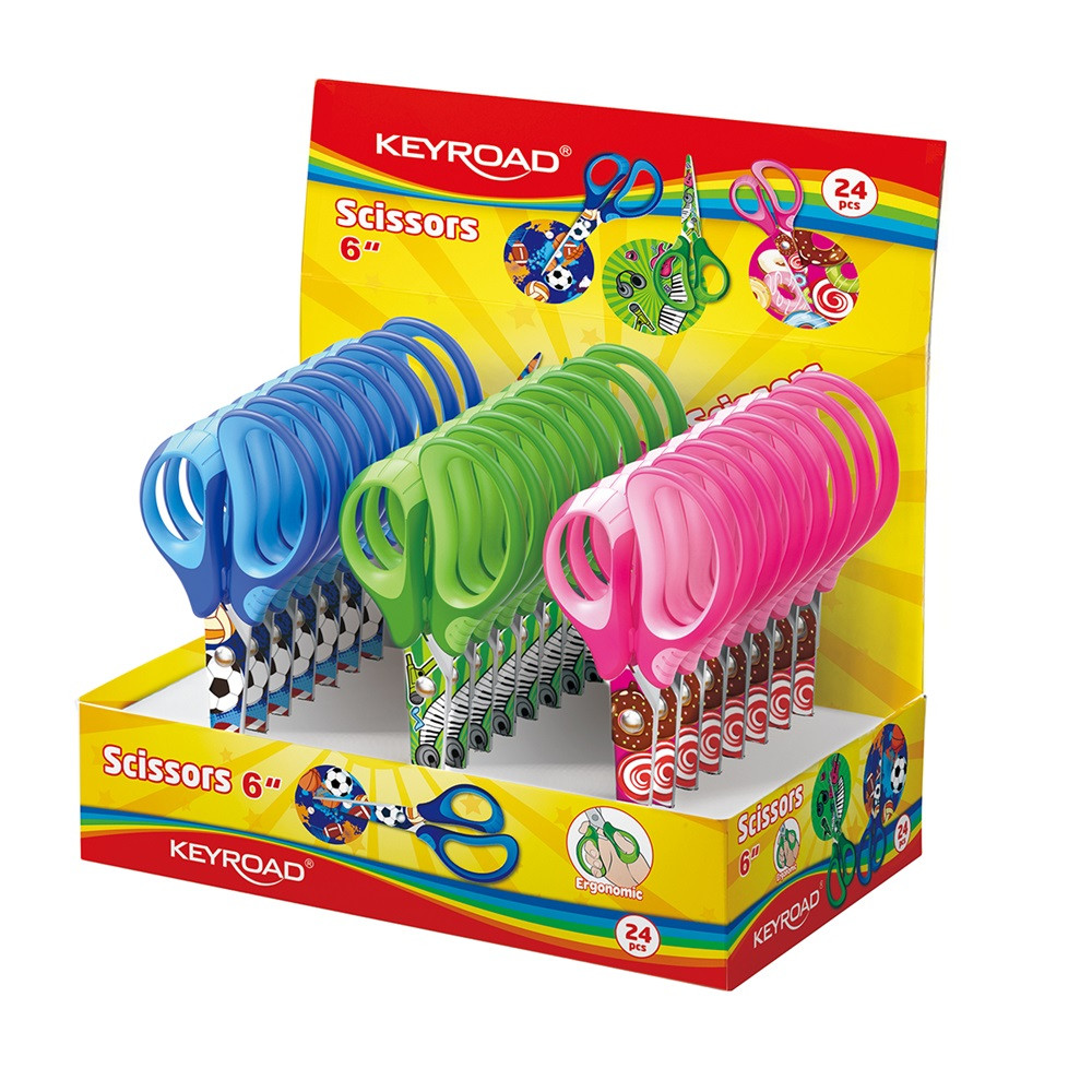 Olló 15 cm hegyes fejű 24 db/display Keyroad Tattoo vegyes színek