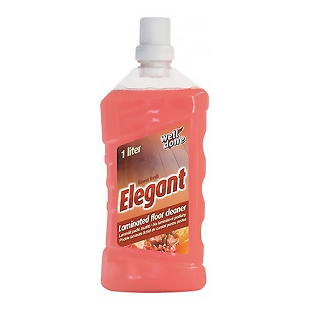 Well Done Elegant padlótisztítószer laminált padlóhoz és PVC-hez hatékonyan távolítja el a szennyeződéseket ápolva és tisztítva a felületet. Foltmentesen szárad, kellemes nyári virág illatú. Laminált padló és PVC burkolatokhoz tervezett - tehát olyan felületeken alkalmazható, ahol különösen fontos a burkolat állagának védelme.