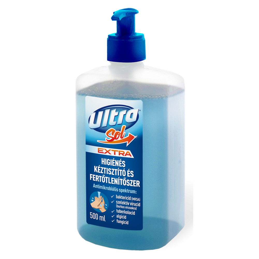 Folyékony szappan pumpás 500 ml fertőtlenítő hatással Ultra Sol Extra termék alkalmazásakor ügyeljen a biztonságra!