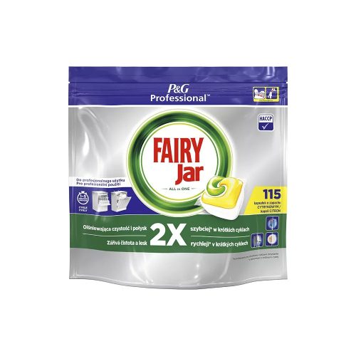 A Jar mosogatógép kapszulák segítenek eltávolítani a beszáradt zsiradékot. Alkalmasak rövid ciklusú (1-5 perc) professzionális mosogatógépekbe. 2 x gyorsabban oldódnak fel mint a tabletta. A felületaktív anyagok biztosítják az ételmaradékok és a zsír eltávolítását az edényekről és a vízben való rögzítésüket, ezáltal megakadályozzák az újra lerakódást az evőeszközökön, tányérokon és poharakon. Alkalmas pohár mosókba is. Hatékony minden vízkeménységi szinten.