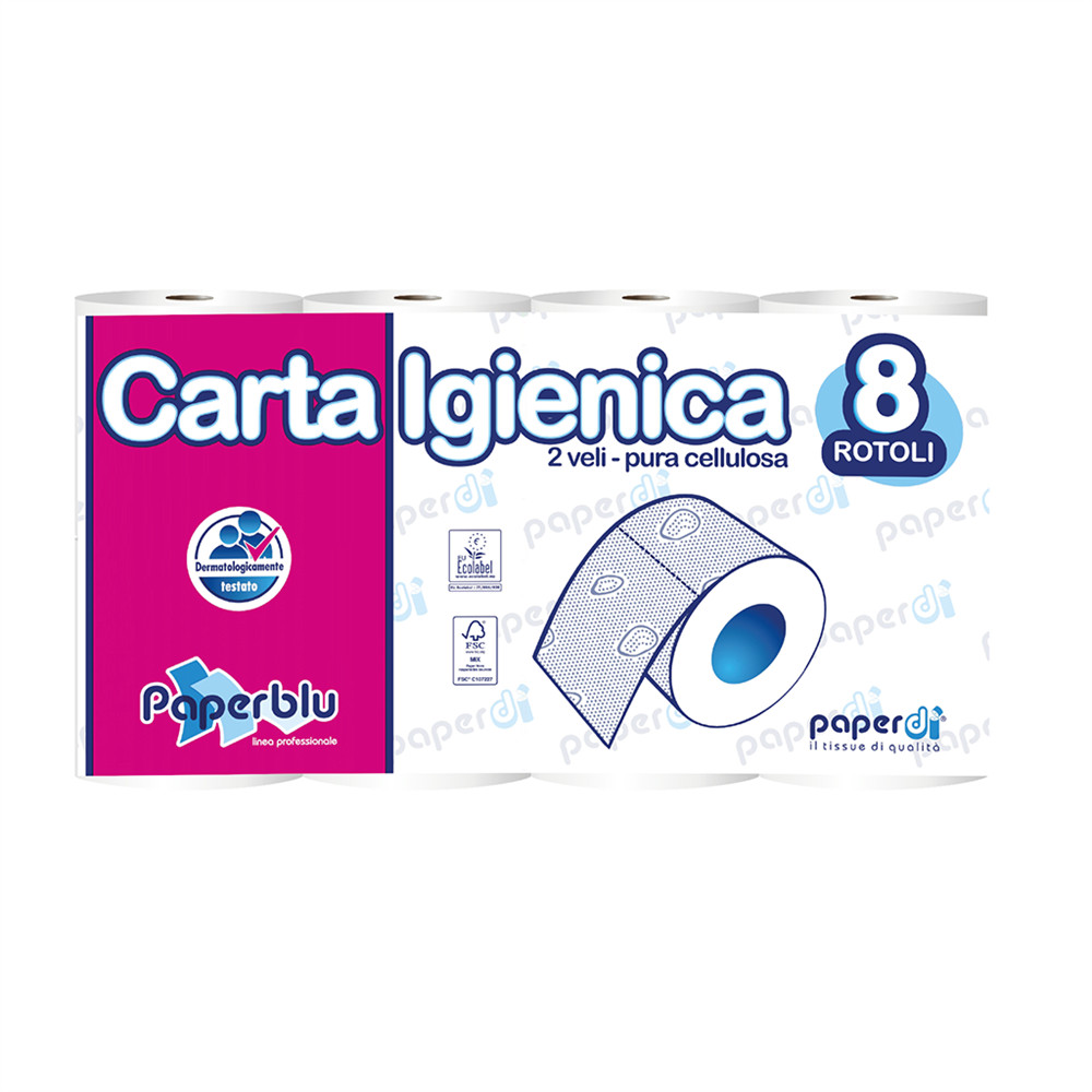 Toalettpapír 2 rétegű kistekercses 100%cellulóz 150 lap/15,75 m/tekercs 8 tekercs/csomag Paperblu Carta Igienica_Paperdi