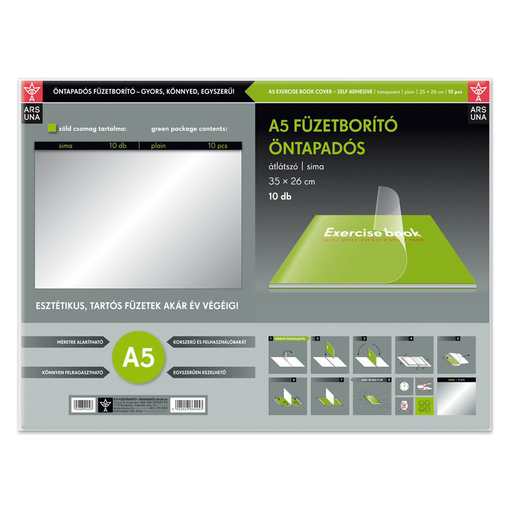 Tankönyvborító öntapadó, A5 35x26cm, 10 ív/csomag, Ars Una, víztiszta