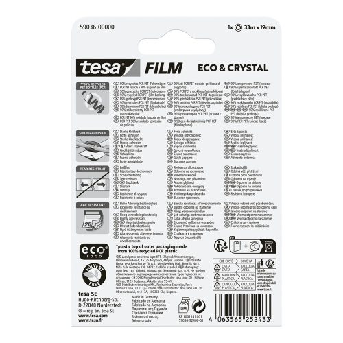 Ragasztószalag 19mmx33m irodai átlátszó újrahasznosított Tesa Eco & Crystal