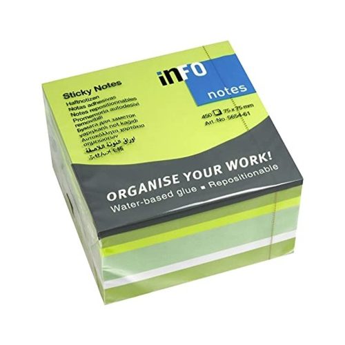 Jegyzettömb öntapadó, 75x75mm, 450lap, Info Notes intenzív zöld árnyalatok