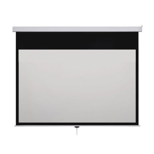 Falra vagy mennyezetre szerelhető vetítővászon, kézi mozgatású, rolós vetítővászon, lassított visszahúzású mechanikával Matt fehér vászonfelület, amely valósághűen adja vissza a színeket. Fekete képernyő szegély biztosítja a vetített kép tiszta elhatárolását.