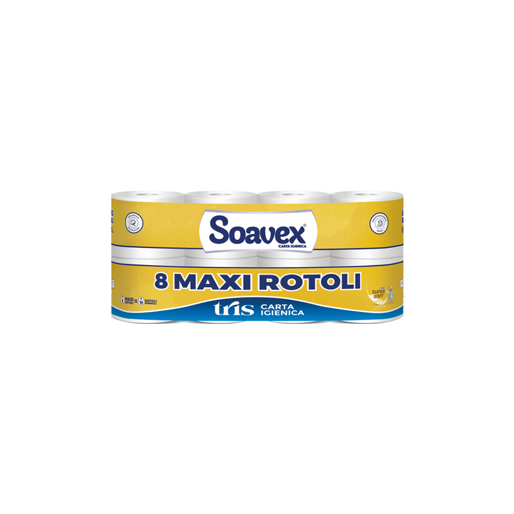 Toalettpapír 3 rétegű kistekercses 100% cellulóz 155 lap/17,5 m/tekercs 8 tekercs/csomag Soavex Maxi Rotoli_Paperdi