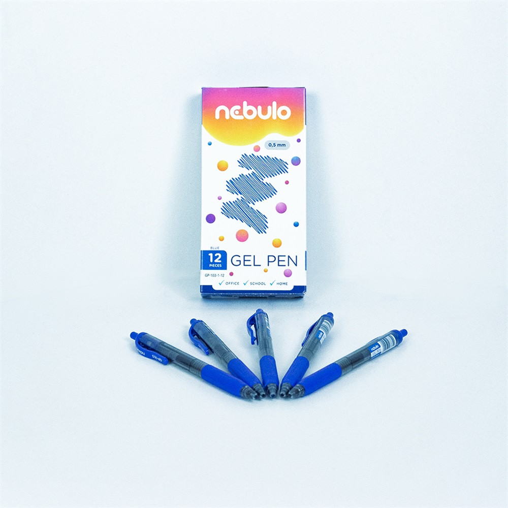 Irodai és általános felhasználásra ajánlott, nyomógombos zselés toll. 0,5 mm írásvastagság; kék tintával ellátva, vegyes tolltest színek, 12 db-os papírdobozos kiszerelésben. Katalóguskód: 61020