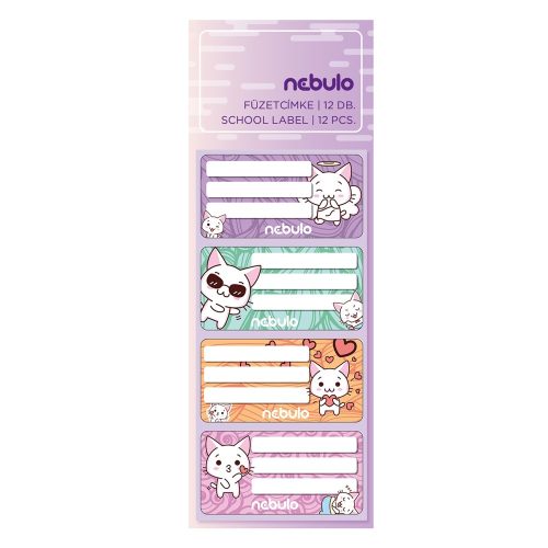 Füzetcímke 12db-os, Cica, vegyes minták, Nebulo