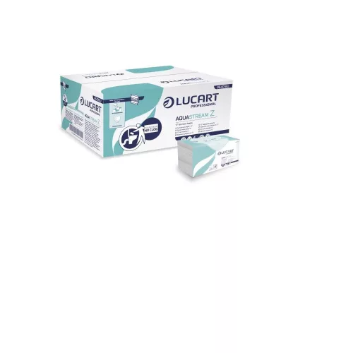 Kéztörlő 2 rétegű Z hajtogatású 242 lap/csomag 15 cs/karton Z Aquastream Lucart_864018U hófehér
