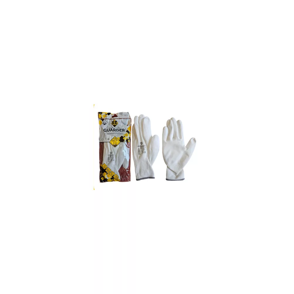 Védőkesztyű precíziós PU mártott tenyérrel L-es méret Guarder fehér