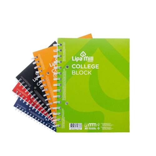 Spirálfüzet A5, 70lap vonalas perforált lyukasztott Lipa Mill vegyes színekben