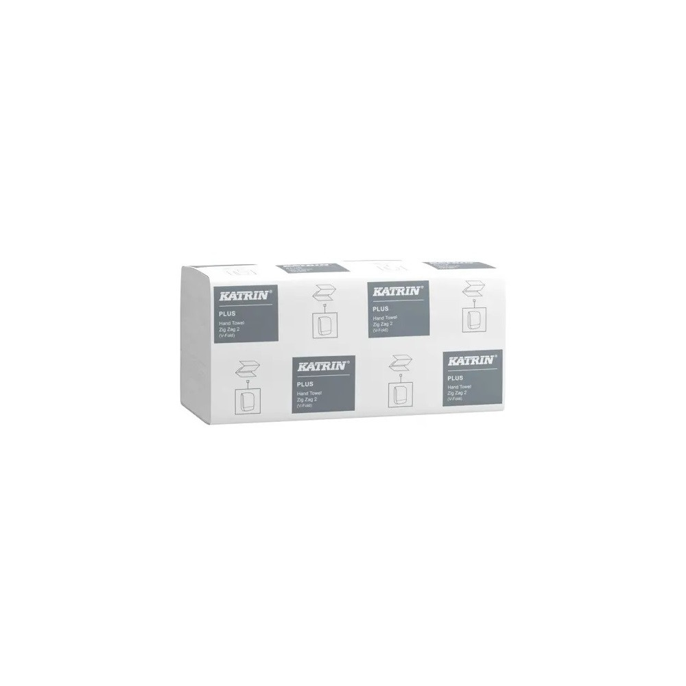 Kéztörlő 2 rétegű V hajtogatású 190 lap/cs 16 csomag/karton Katrin Plus Zig Zag 2 rétegű_769191 hófehér