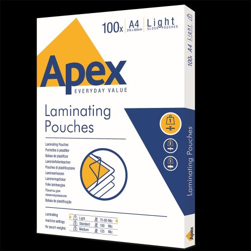 Lamináló fólia A4, 80 mic. 100 db/doboz, Apex Light