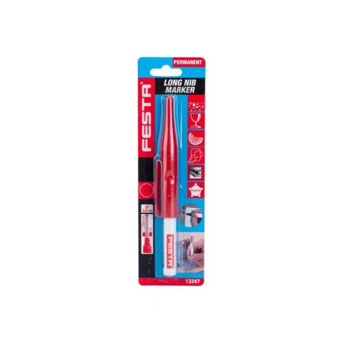 Furatközéppont jelölő filc - piros, tartós jelölés, a csúcs átmérője 3 mm, így lehetővé teszi a kis átmérők jelölését akár 30 mm vastag anyagokon keresztül.