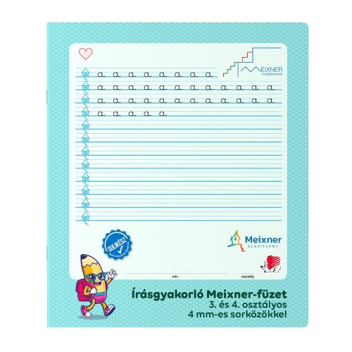 Írás gyakorló füzet a 3. és 4. osztályosok számára, amely a Meixner Alapítvány együttműködésével és ajánlásával jött létre. Speciális vonalazású és kialakítású füzet alkalmas a Meixner-féle írás tanulás elsajátítására és gyakorlására.