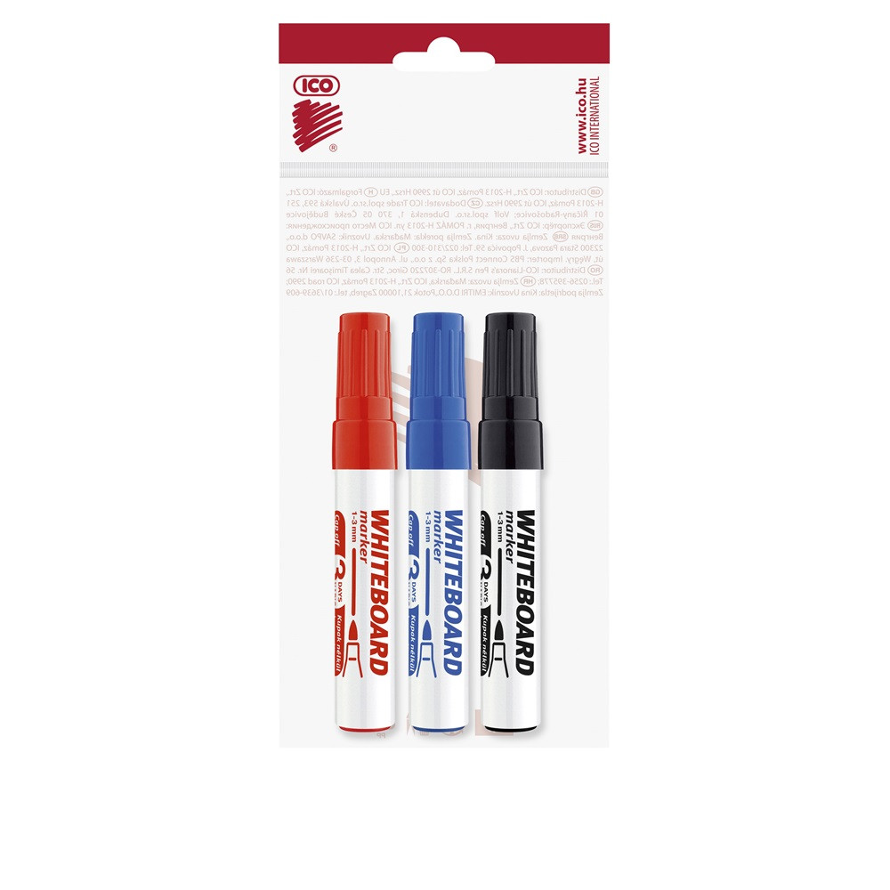 Táblamarker készlet, 3mm, kerek Ico 11, 3 klf.szín