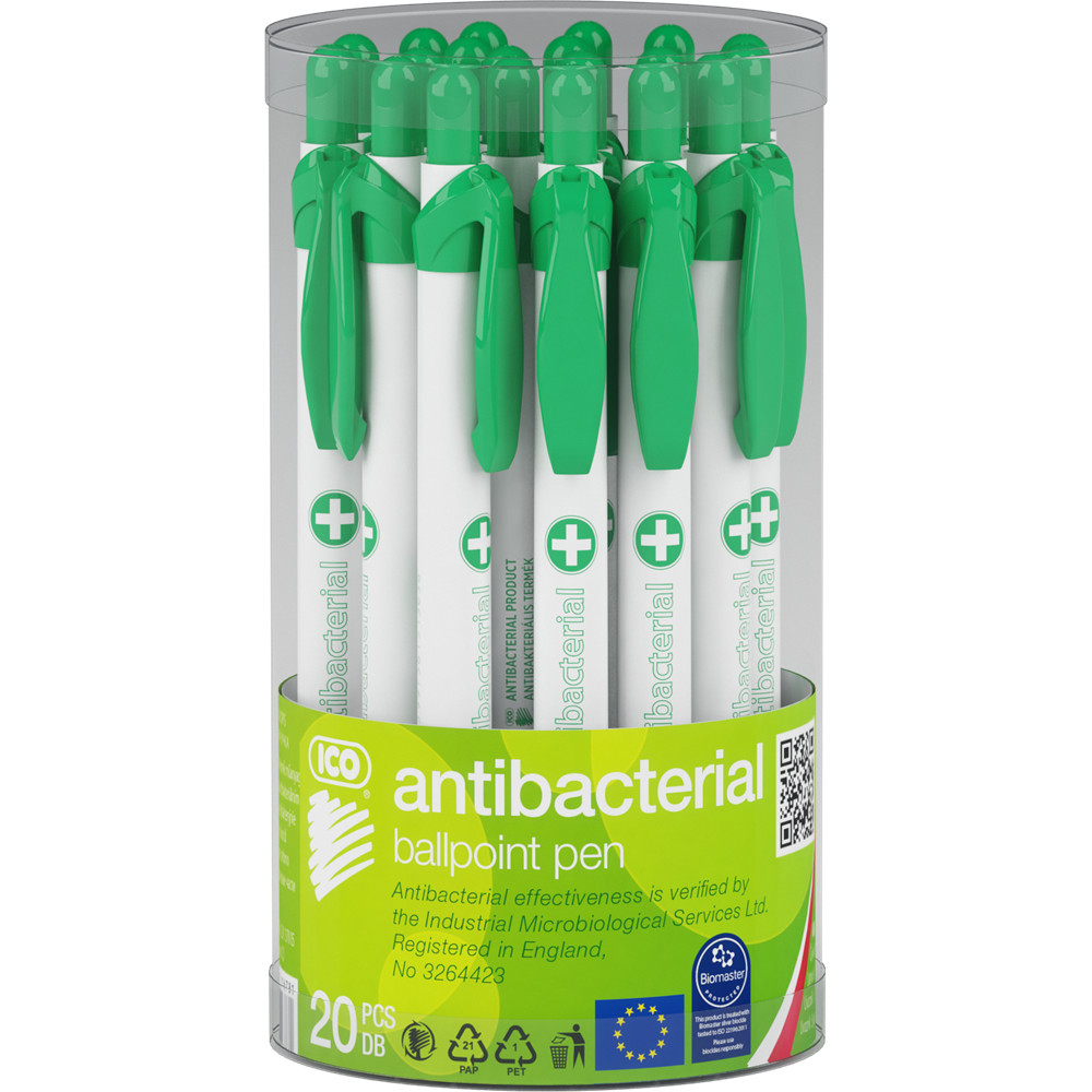 Golyóstoll nyomógombos antibakteriális műanyag test, 0,8mm, Ico, írásszín kék