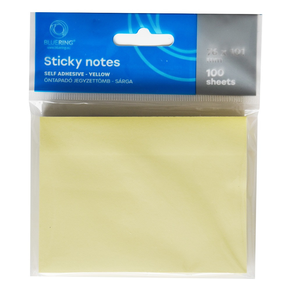 Jegyzettömb öntapadó, 101x76mm, 100lap, Bluering® , sárga
